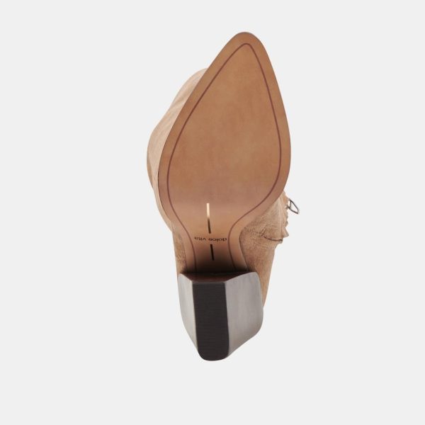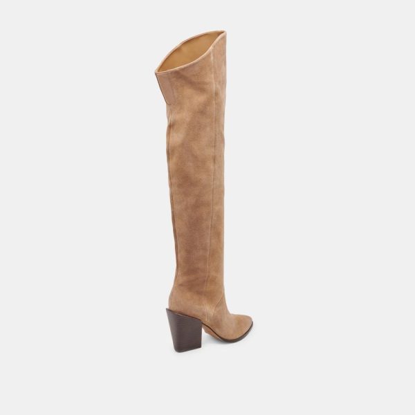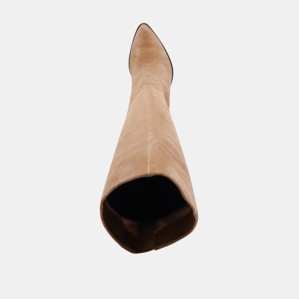 LUPIN is a lot of boot to handle. This over-the-knee style has a hint of western with a pointed toe and a high block heel. Black leather is made for a night out while mushroom suede lends a luxe touch to all your fall looks.