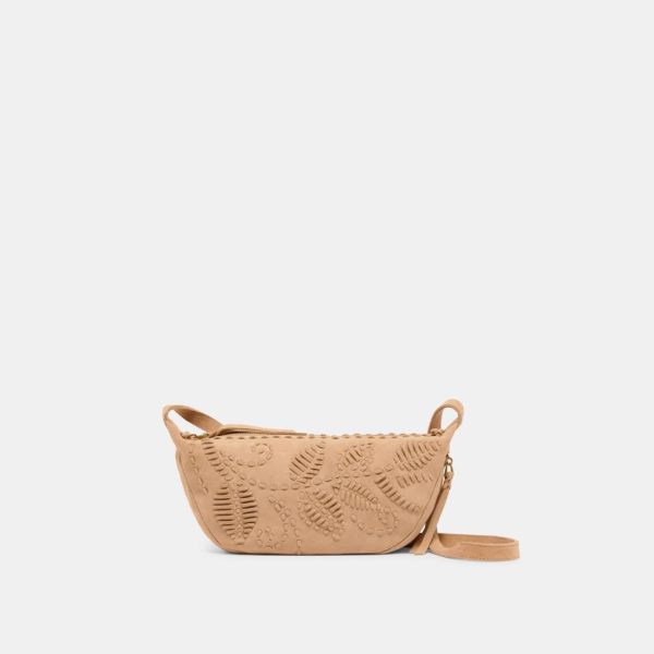 An everyday crossbody with a touch of statement-making detailing. LIPARI’s timeless silhouette in creme leather or beige suede is complete with a leather embroidered design that draws the eye and the compliments.
