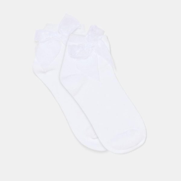 The Bow Anklet Socks bring just the right touch with their delicate bow detail and flirty anklet fit. Available in classic black or white, they’re the perfect finishing touch for anything from ballet flats to loafers.